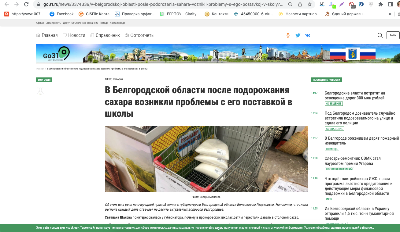 Проте, видання зазначає, логістичні складнощі із забезпеченням цукром школярів є не лише в Бєлгородській області, а й в інших регіонах Росії.