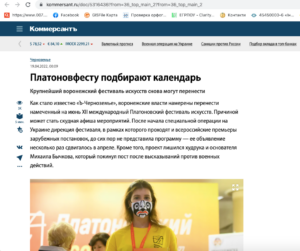 Через мізерну кількість учасників у Воронежі скасовується XII міжнародний Платонівський фестиваль мистецтв, який планували провести в червні.