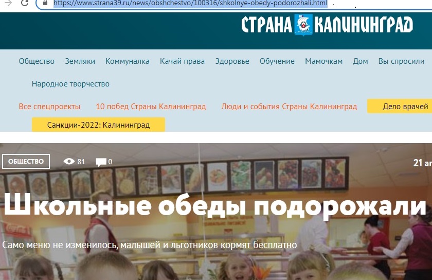 З 1 квітня у школах Калінінградської області (РФ) зросла вартість гарячого харчування для учнів. Про це пише «Страна Калінінград».
