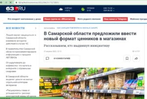 Голова громадської палати Самарської області Віктор Сойфер на нараді оперативного губернаторського штабу запропонував змінити традиційне маркування цін у магазинах і поряд з фактичною вказувати й закупівельну ціну. На його думку, це допоможе розібратися у ціноутворенні.