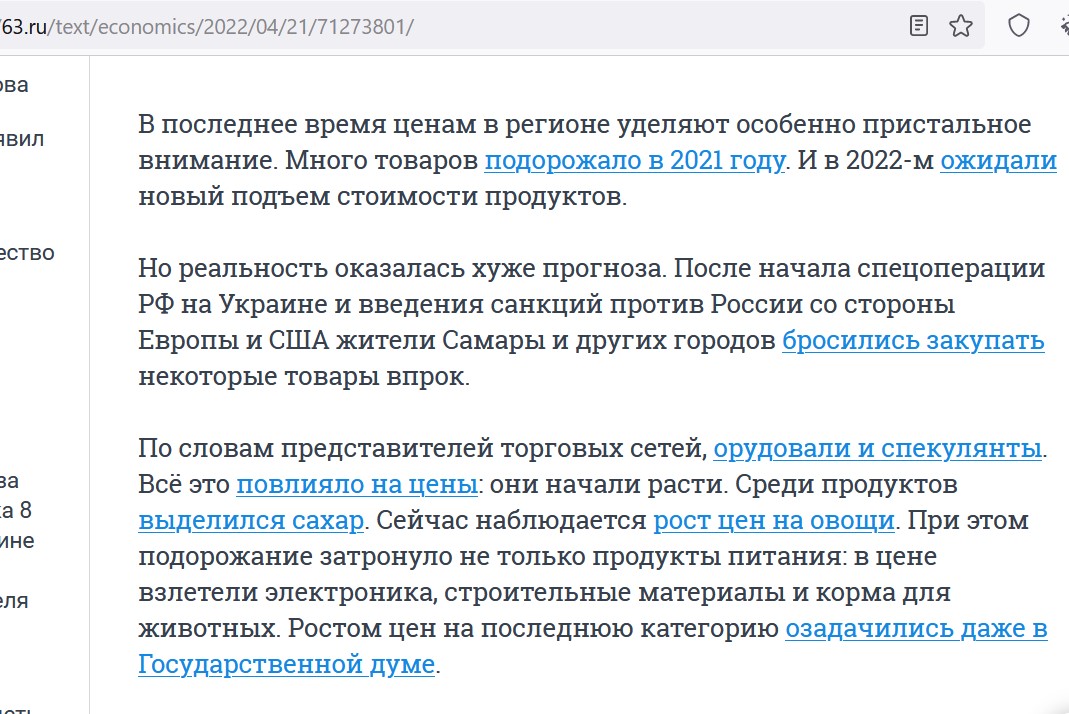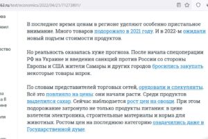 Як пише сайт «Самара.Онлайн», реальна ситуація з підвищенням цін на продукти після введення західних санкцій виявилася гіршою ніж очікувалося, тому жителі Самари та інших російських міст кинулися скуповувати деякі товари.