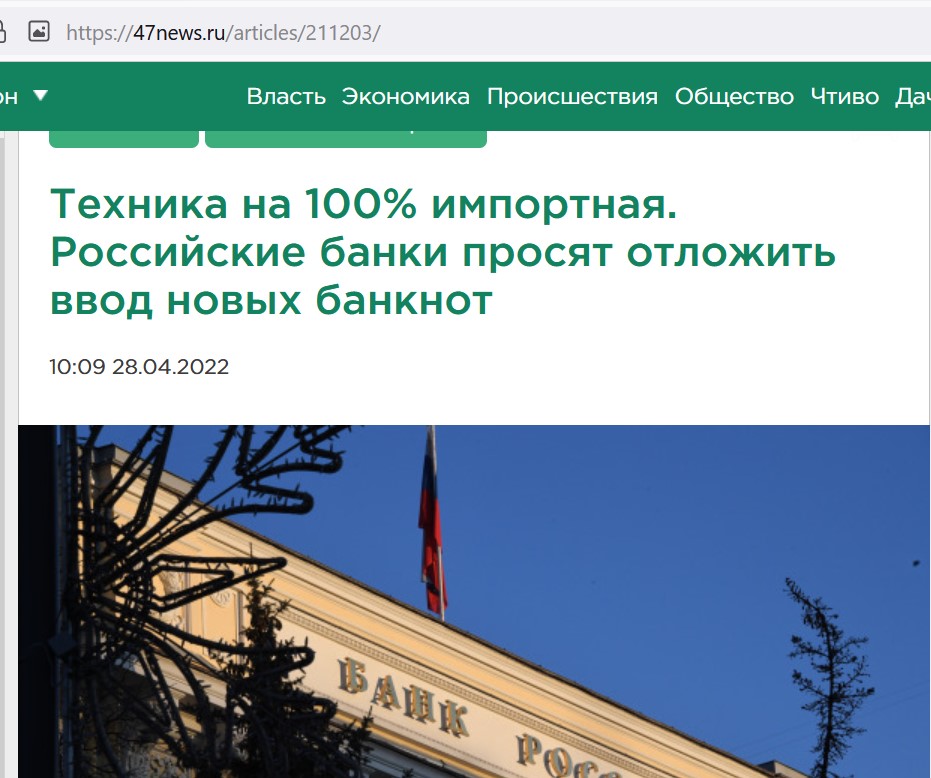 Російські банки звернулися до Центробанку з пропозицією відкласти випуск в обіг нових банкнот через викликані санкціями проблеми з постачанням та обслуговуванням обладнання, повідомляє 47news.ru з посиланням на РИА Новости і лист Асоціації банків Росії (АБР) регулятору.