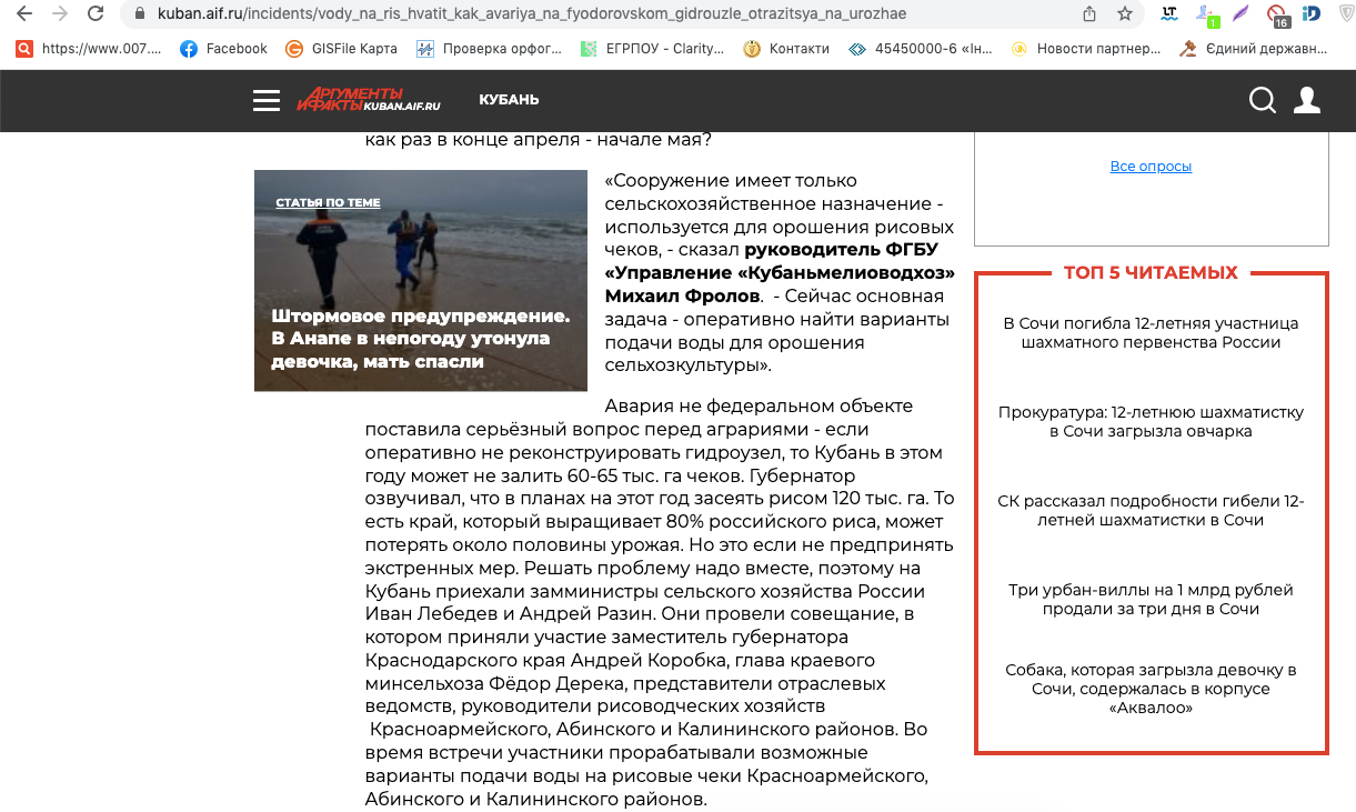 «Спорудження має лише сільськогосподарське призначення – використовується для зрошення рисових чеків. Зараз основне завдання – оперативно знайти варіанти подачі води для зрошення сільгоспкультури», – цитує видання керівника ФДБУ «Управління «Кубаньмеліоводгосп» Михайла Фролова.