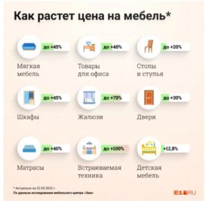 Про це пише видання «Екатеринбург онлайн» з посиланням на ціни в меблевому центрі «Эма» у Єкатеринбурзі. Актуальні ціни порівнювали з пропозиціями на січень 2022 року.