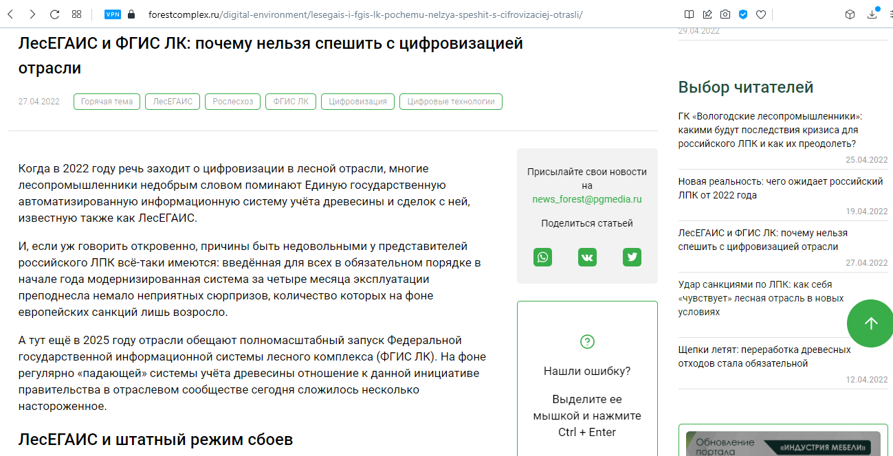 Лісопромисловці скаржились на некоректну роботу системи ще на початку 2022 року, коли стартував один із етапів її впровадження. У лютому деякі з них навіть звертались у прокуратуру із проханням перевірити діяльність Рослісгоспу. Крім того, для роботи із системою потрібні смартфони. Однак лісопромисловці бояться, що через санкції проти Росії за напад на Україну із закордонними гаджетами буде те ж, що й з європейською лісовою технікою – або припинення постачання, або зростання цін до непідйомних.