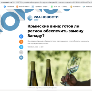 Кримські винороби не втомлюються перераховувати російським журналістам європейські сорти вин, які вони «цілком здані замінити». Проте визнають, що невдовзі вироблені на півострові вина піднімуться в ціні на 15%, а європейські – до 30%, і це подорожчання буде не останнім.