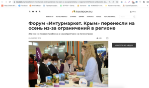 Форум-виставка «Інтурмаркет. Крим», яка мала пройти в Євпаторії наприкінці наступного тижня, не відбудеться у заявлені дати – захід перенесено через закриття авіасполучення з тимчасово окупованим півостровом.