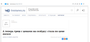 Як пише авторка новини, є ряд товарів, ціна яких зросла вдвічі та більше. Відкриттям для неї став звичайний солоний пролетарський оселедець. На Соминці в магазині «Кредо» кілограм його коштує 333 рублі (для переведення цін у гривні діліть приблизно на три).