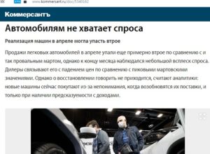Про це пише «Комерсант» з посиланням на дані «Автостату». Аналітичне агентство орієнтується на інформацію АТ «Електронний паспорт», тобто фактично йдеться про реєстрацію автомобілів.