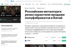 У другій половині квітня 2022 року Росія експортувала в Китай близько 400 тис т слябу – сталевого напівфабрикату для виробництва плоского прокату. Продавцями були «Evraz», «Северсталь» і «НЛМК». Це майже вп’ятеро більше, ніж за весь 2021 рік, коли РФ продала до Китаю 84 тис т слябу. Поставки виросли після того, як Європа заборонила імпорт російської сталевої продукції більш високих переділів, яку роблять, зокрема, зі слябу.