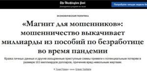 Неймовірне пограбування почалось з початком ковідної епідемії. З 2020 року США направили на програми допомоги понад 5 трильйонів доларів. Шахраї масово подають заявки на отримання допомоги по безробіттю від імені реально існуючих американців, та отримують гроші замість них, поки вони навіть не знають про це. Системи безпеки виявились безсилими перед шахраями через їхню застарілість та відсутність достатньої кількості чиновників. В результаті говорять про розкрадання $163 мільярдів доларів, з яких вдалось повернути лише чотири мільярди. Люди, від чийого імені шахраї отримали гроші, тепер самі не завжди можуть отримати відповідну допомогу.