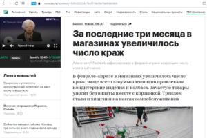 У лютому-квітні 2022 року в одному магазині Росії в середньому фіксувалося близько 130 крадіжок, що на 18% більше, ніж в аналогічному періоді 2021 року. Про це пише «РБК».