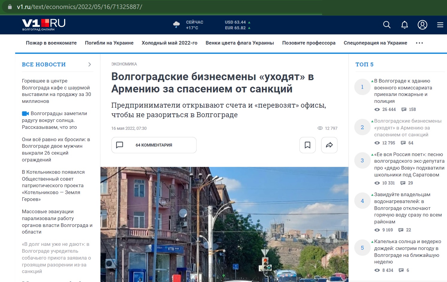 Як пише сайт «Волгоград.Онлайн», підприємці обирають вірменські банки, бо там працює система SWIFT, яку після введення санкції відключили для багатьох російських фінустанов.