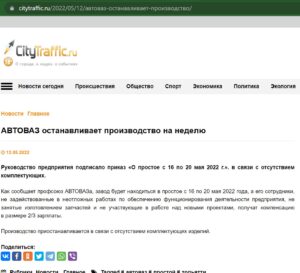 Наказ «Про простій з 16 по 20 травня 2022 р.» підписало керівництво заводу, – пише сайт «СитиТрафик.Ру».
