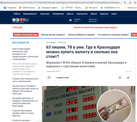 За даними видання, багато містян скаржиться на повну неможливість придбати валюту. Придбати долари журналісти спробували у 10 банках в той час, коли за курсом Центрального банку Росії вартість одного долара становила 63,4 рубля, євро – 65,8 рубля (для переведення у гривні діліть приблизно на три).