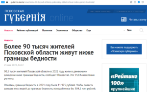 За межею бідності живе 15% жителів Псковщини. Про це написала «Псковська губернія». Щоб довести їхні доходи до межі бідності, вистачило б вартості однієї ракети «Іскандер».