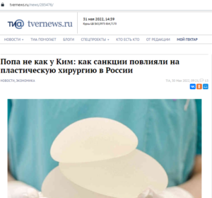 Після вторгнення Росії в Україну виявилось, що російська пластична хірургія залежна від імпорту. Ціни зросли на все. У перші місяці війни запасів на заплановані процедури та маніпуляції ще вистачало, а потім почалися перебої. Постачання так і не відновилось у колишніх обсягах. Про це «tvernews.ru» розповів пластичний хірург Євгеній Балінер.