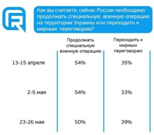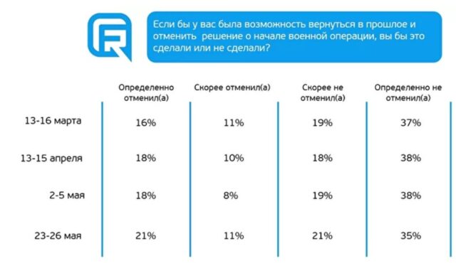 “Можна з обережністю зробити висновок про те, що громадська думка щодо ситуації на території України стала стійкою і має тенденцію до розчарування у військовій операції.