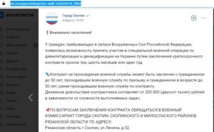 У Рязанській області військкомат намагається знайти бажаючих для участі в «спецоперації» через ВКонтакте, а ЗМІ нагадує про загиблих