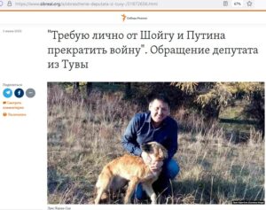 Депутат із Туви вимагає від Путіна і Шойгу припинити війну
