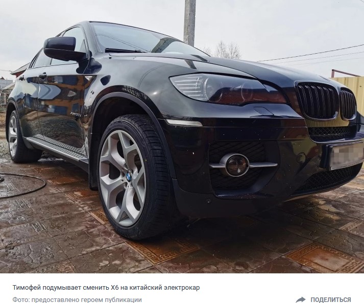 BMW X6, 2010 р. в. Власник – Тимофій, 43 роки, співвласник мережі пивних магазинів. Купив у 2017 році в Москві за 1,6 млн рублів