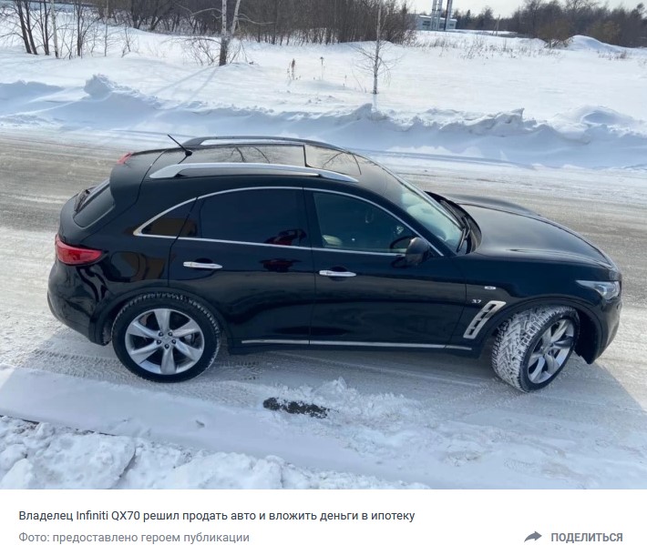 Infiniti Qx70, 2015 р. в. Власник – Дмитро, 36 років, інвестор. Купив у 2019 році в Тюмені за 1,45 млн рублів