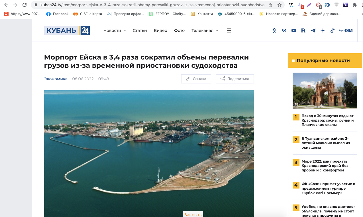За його словами, робота порту «практично зупинена». Зазначається, що порт Єйська – одне з містоутворюючих підприємств, його робота важлива для економіки Краснодарського краю. У морпорті працюють близько 500 людей.