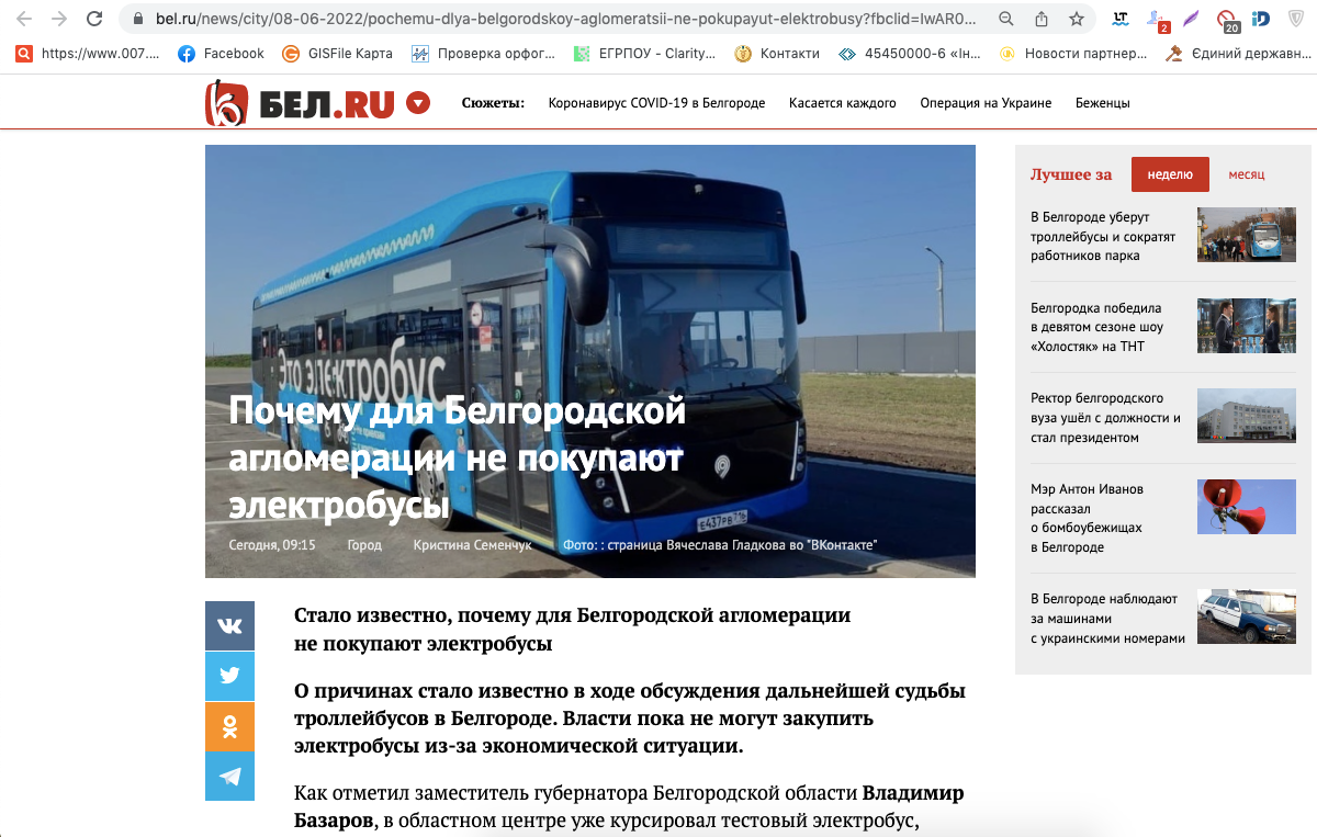 Влада Бєлгорода визнала, що не зможе замінити зупинені тролейбуси електробусами – немає комплектуючих
