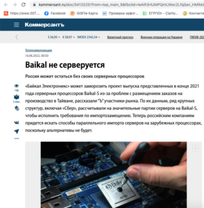 Партії вже виготовлених в Тайвані процесорів для комп’ютерів і ноутбуків Baikal-M також не поступають в РФ. Хоча роком раніше «Байкал Електронікс» оголосив про плани замовити в 2022 році у TSMC 300 тис процесорів та різних чипів, а до 2025 року збільшити цей показник удвічі. Також на процесори Baikal-S планувала перейти низка російських компаній, зокрема, Сбербанк. Тепер їм доведеться вирішувати проблеми з процесорами за рахунок паралельного імпорту.