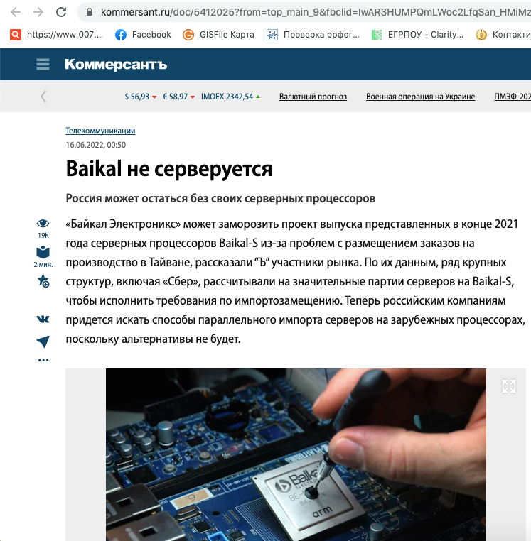 Через проблеми з Тайванем, прогнозують експерти, «Байкал Електронікс» змушена буде відмовитися від випуску нових серверних процесорів Baikal-S2, на розробку яких вона отримала 5,64 млрд рублів у вигляді субсидії від Мінпромторгу (для переведення у гривні діліть приблизно на три).