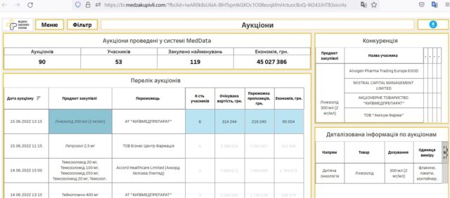 «Наші гроші» зустрілись з керівником «МЗУ» Арсеном Жумаділовим для прояснення ситуації. Вже після нашої розмови його фахівці доробили дашборд, через який видно закупівлі з 20 травня по нинішній час. Тут вказана вся інформація про очікувану вартість, учасників аукціонів та їх перебіг, економію. Тобто є базова інформація для мінімізації ризиків в плані прозорості.