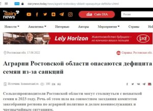 Сільгоспвиробники Ростовської області (РФ) можуть зіштовхнутися з нестачею насіння у 2023 році. Про це пише «Dairynews.today», посилаючись на «Комерсант».