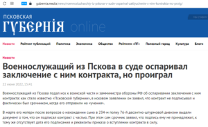 Десантник із Пскова програв позов до військової частини і заступника міністра оборони РФ про оскарження укладення з ним контракту. Про це написала «Псковська губернія».