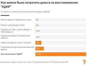 10 червня скасували тендер на роботи з капітального ремонту шляхопроводу через залізницю при під’їзді до аеропорту м. Чита на трасі Р-258 «Байкал» вартістю 6,6 млрд. рублів. Це у 300 разів менше, ніж фінансування ДНР та ЛНР.