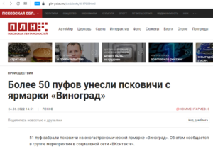 Жителі Пскова забрали 51 пуф з винного ярмарку «Виноград». Про це пише «Псковська стрічка новин» з посиланням на оголошення про розшук у спільноті заходу «ВКонтакті».