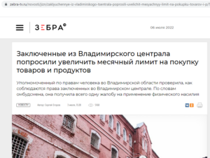 Також в’язні запропонували індексувати розмір ліміту на купівлю товарів. Зараз у централі дозволяється витрачати не більше 6 тисяч рублів на місяць, тоді як через підвищення цін купівельна спроможність помітно зменшилася.
