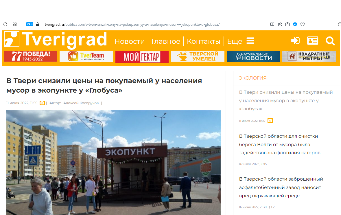 У Твері від чверті до двох разів упали ціни прийому вторинної сировини в екопункті біля гіпермаркеут «Глобусу» на Жовтневому проспекті. В інших регіонах теж скаржаться на падіння цін через санкції за напад на Україну. Про це пише «Tverigrad» та інші видання.