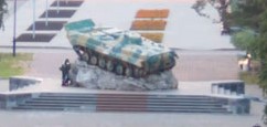 Напис з’явився вночі 11 липня на військовій БМП-1, яка стоїть на постаменті на алеї Слави та є меморіалом на честь каменських військових, що загинули в Чечні та Афганістані.