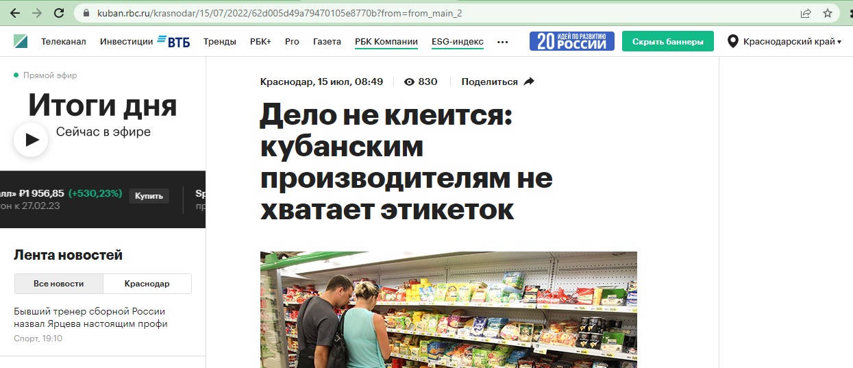 Дінський пивзавод в Краснодарському краї в липні зіткнувся з дефіцитом паперових етикеток, протягом семи днів у підприємства не було в наявності цього продукта.