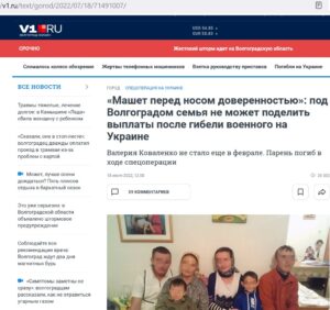 Нещодавно на телеканалі “Росія-1” вийшов сюжет про сім’ю, яка на компенсацію за загиблого в Україні сина-військового купила авто “Лада”, нібито “на пам’ять про сина”. В сюжеті кореспондент сказав, що такі компенсації в народі тепер називають “гробовими”.