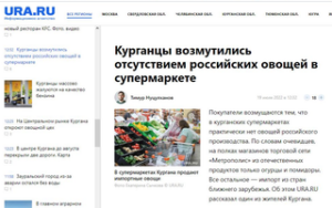 Покупці в Кургані (адміністративний центр Курганської області РФ) скаржаться на відсутність в місцевих крамницях овочів російського виробництва. На полицях магазинів торгової мережі «Метрополіс» із вітчизняних продуктів лише огірки та помідори, решта — імпорт із країн ближнього зарубіжжя.