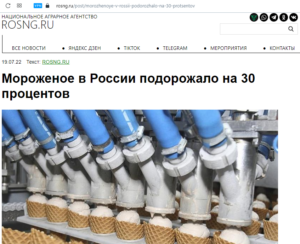 Морозиво в Росії подорожчало на третину через санкції, подорожчання цукру, дефіцит молока і введення російською владою цифрового маркування «Чесний знак». Про це розповіли «Національному аграрному агентству» в Союзі морозивників Росії.