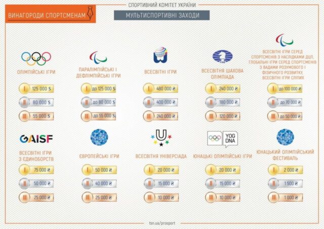 За даними Спортивного комітету України, винагорода за медалі на Дефлімпіаді для українців становлять до $125 тисяч за золото, до $80 тисяч за срібло і до $55 тисяч за бронзу.