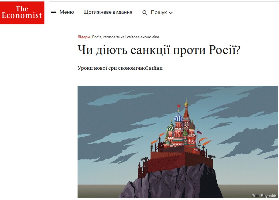 З лютого Америка, Європа та їхні союзники обрушили безпрецедентний шквал заборон на тисячі російських фірм та приватних осіб. Половину валютних резервів Росії у розмірі $580 млрд. заморожено, а більшість великих банків відрізано від глобальної платіжної системи. Америка більше не купує російську нафту, а європейське ембарго повністю набуде чинності у лютому. Російським фірмам заборонено купувати комплектуючі – від двигунів до мікросхем. Олігархам та чиновникам заборонено поїздки та заморожено активи. Американська оперативна група KleptoCapture конфіскувала суперяхту, на борту якої могло знаходитися яйце Фаберже.