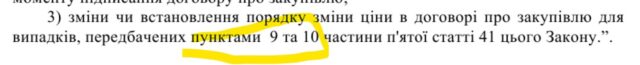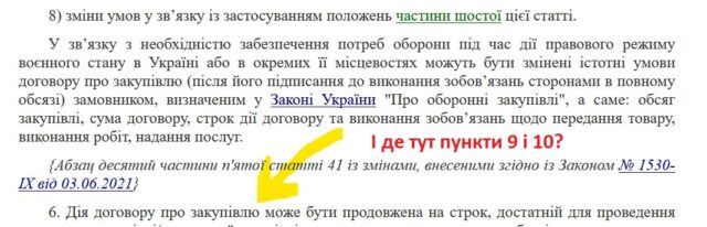 Наприклад в законопроекті 8022 написано, що необхідні зміни треба внести в пункти 9 та 10 частини п’ятої статті 41 закону «Про публічні закупівлі».
