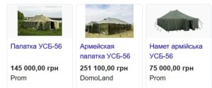 У листопаді 2022 року Дніпровська міськрада замовила «Сівертексу» вісім наметів на 12% дешевше – по 112 тис грн, або $3 059. Але їхні характеристики відповідали старому УСБ-56/2005 за попередньою версією технічних умов зі змінами №4, а не модернізованому.