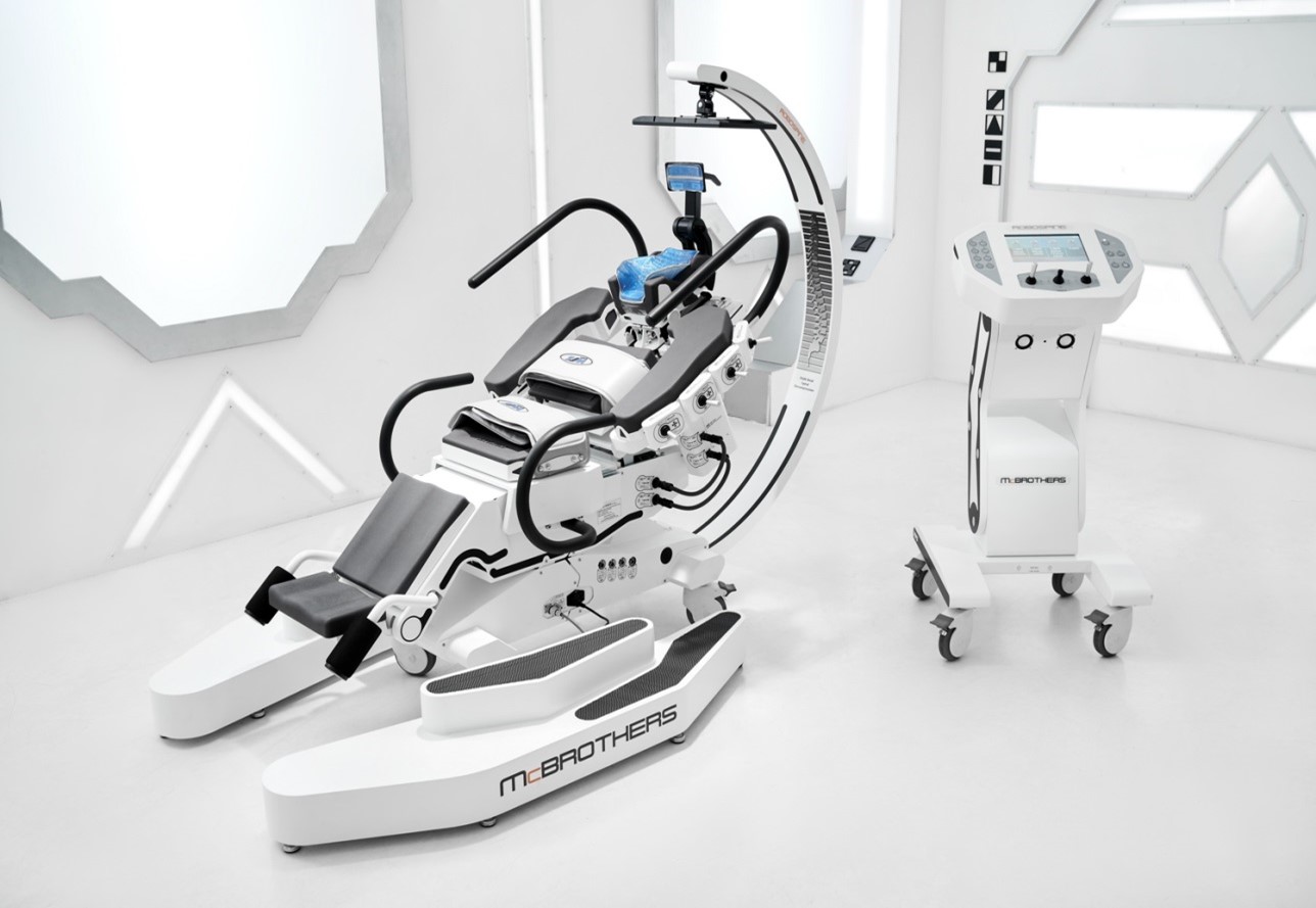 Robospine – це ортопедична система декомпресії хребта за допомогою м’яких механічних зусиль, яка полегшує біль при стенозі хребта, кіфозі, сколіозі, грижах та інших хворобах.