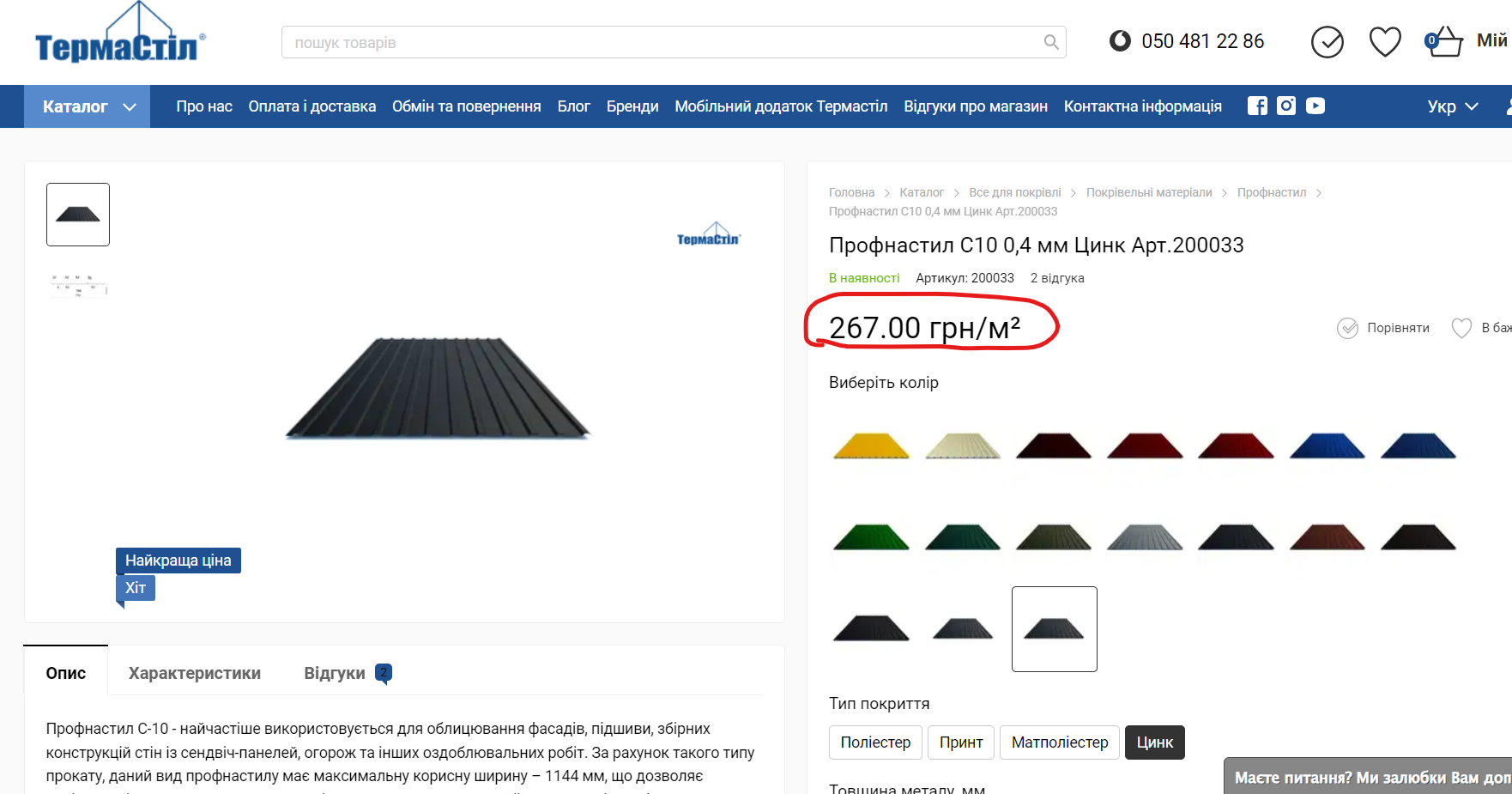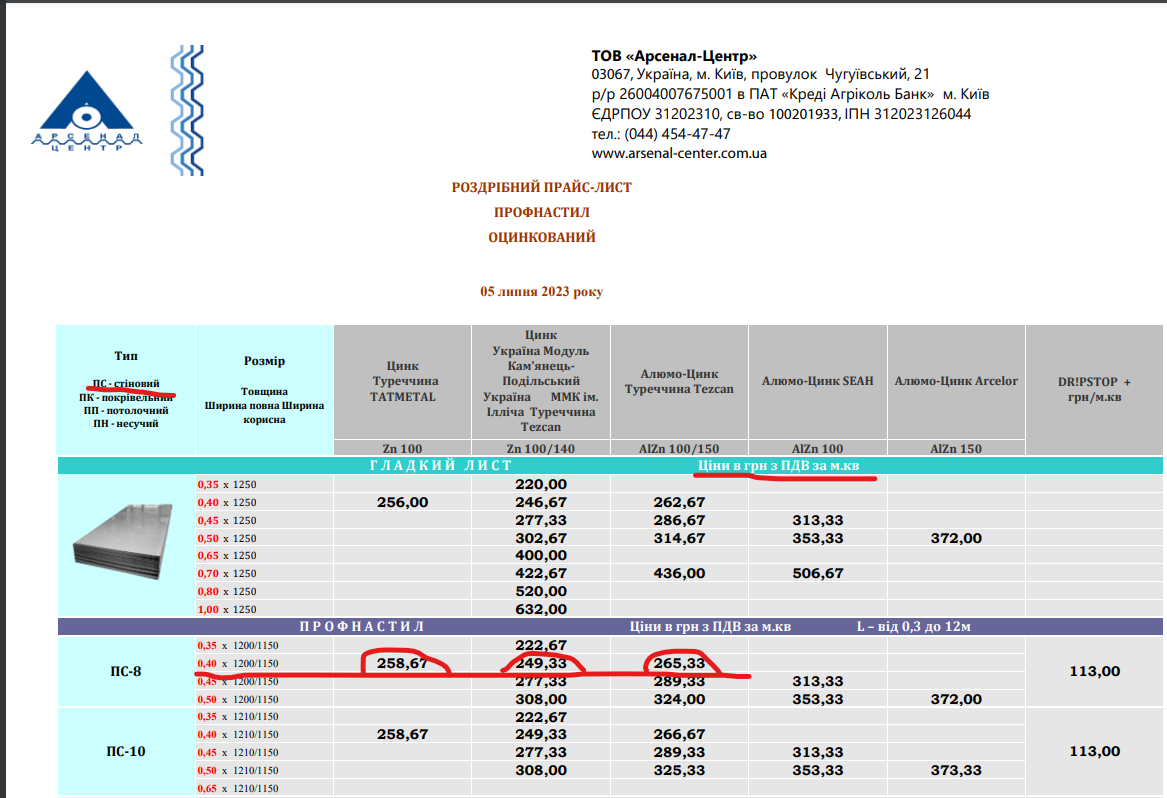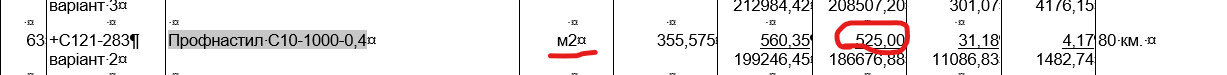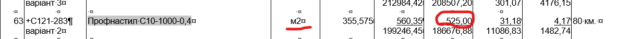 Профнастил С10 в кошторисі вказаний по 525 грн за квадратний метр без ПДВ. В магазинах можна купити за ціною від 258  до 267 грн з ПДВ.
