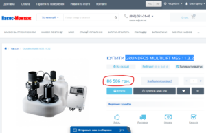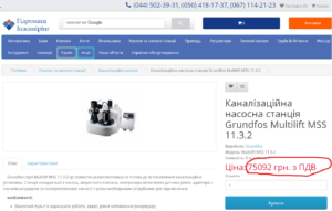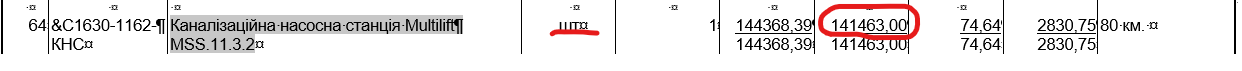 Насосна станція каналізаційна в кошторисі коштує 141 тисячу гривень без ПДВ. А в магазинах такий насос продається за ціною від 75 до 86 тисяч гривень з урахуванням податку.