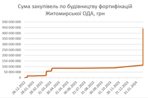 Разом з тим, в будівництві фортифікаційних споруд оживилась Житомирська область. Місцева обладміністрація минулого тижня оприлюднила відповідні підряди на 0,35 млрд грн.